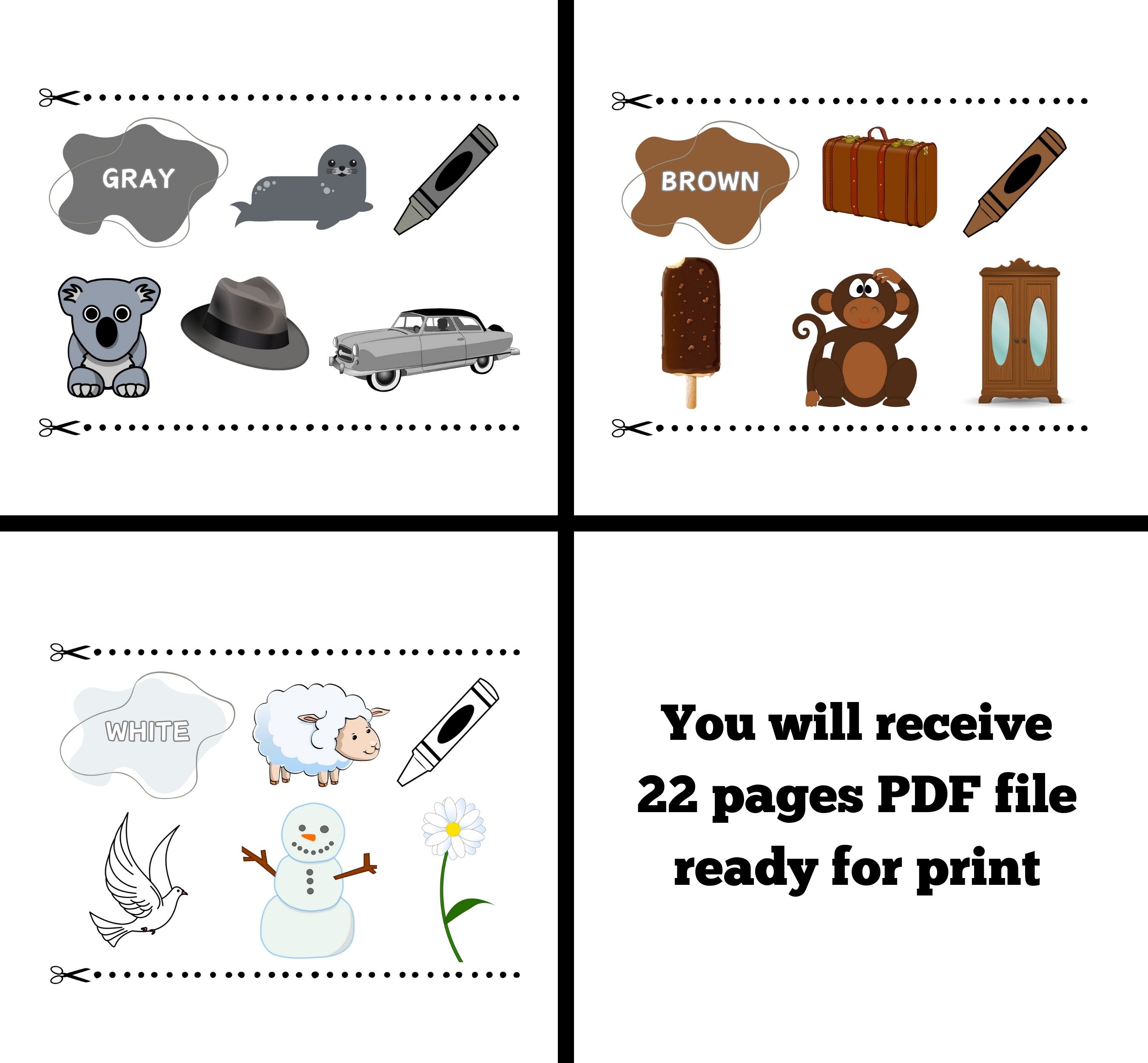 This is a listing for an instant download PDF-file. It's a fun way for your little one to learn colors, matching and a whole lot more.